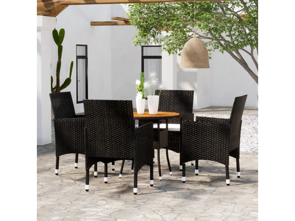Vďaka oceľovému rámu s práškovým nástrekom obaleným polyratanom je súprava vonkajšieho sedacieho nábytku odolná. Doska je vyrobená z masívneho akáciového dreva, čo je tvrdé drevo s hustou štruktúrou. Navyše, hrubo polstrované vankúše poskytujú maximálne pohodlie počas sedenia.