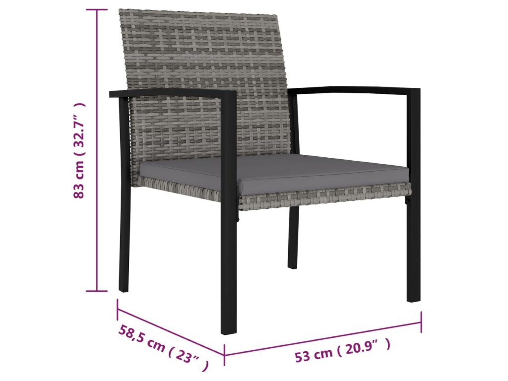 Vďaka oceľovému rámu sú stôl aj stoličky skutočne pevné a stabilné. Sada má ľahkú konštrukciu, a tak môžete všetky kusy nábytku bez problémov premiestňovať. PE ratan je vodovzdorný a odolný voči poveternostným vplyvom, vďaka čomu sa dá vonkajšia súprava nábytku bez problémov očistiť a je trvácna. Hrubé odnímateľné podložky na sedadlá sa postarajú o pohodlie pri sedení.