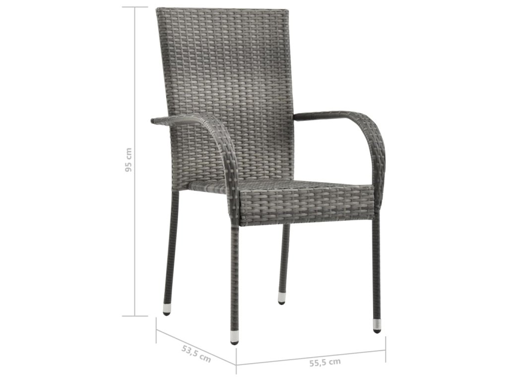 Jedálenský stôl je vyrobený z masívneho akáciového dreva a odolnej ocele, takže je pevný a stabilný. Vďaka povrchu s olejovým náterom je vhodný aj na vonkajšie použitie. Jedálenské stoličky s oceľovým rámom potiahnutým PE ratanom, ktorý je odolný voči poveternostným vplyvom, sú pevné a ľahko sa čistia. Tieto záhradné stoličky je možné stohovať, aby sa ušetrilo miesto, keď sa práve nepoužívajú.