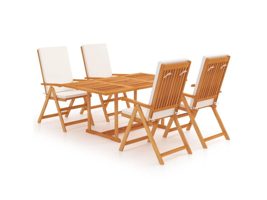 Súprava má krásnu povrchovú úpravu, ktorá dodáva drevu teplú farbu. Stôl má otvor na slnečník, čím poskytuje ochranu pred slnkom. Operadlá stoličiek sú nastaviteľné do 5 polôh, aby ste si vždy našli tú najpohodlnejšiu pozíciu. Vďaka sklopnému dizajnu sa dajú stoličky sklopiť, aby sa ušetrilo miesto, keď sa nepoužívajú. Sú tiež ľahké a ľahko sa presúvajú. Hrubé čalúnené vankúše poskytujú maximálne pohodlie a poťahy na vankúše sú odnímateľné pre ľahké pranie. Sada nábytku vám poskytuje pohodlie a príjemný čas strávený so svojou rodinou a priateľmi. Okrem toho sa táto sada ľahko čistí vlhkou handričkou.