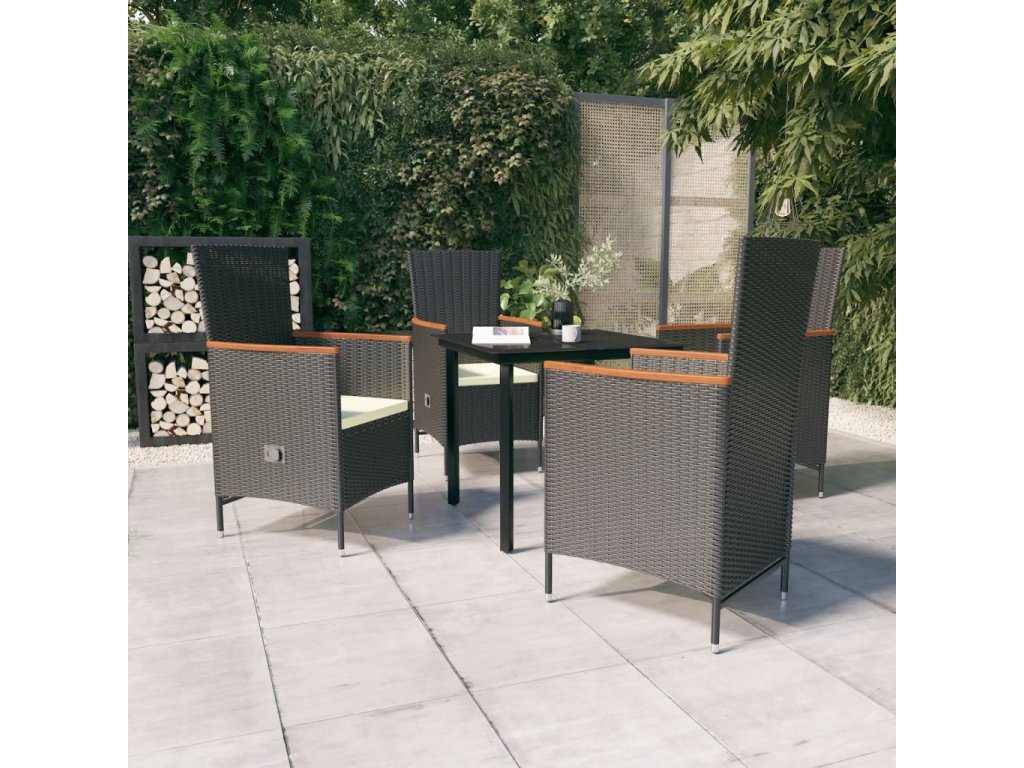 Stôl a stoličky sú pevné a stabilné vďaka oceľovým rámom s práškovým nástrekom, čím sú vhodné pre každodenné vonkajšie používanie. Vďaka vodeodolnému PE ratanu sa stoličky ľahko čistia a sú vhodné na každodenné používanie. Operadlo sa sklápa potiahnutím tlačidla na boku. Vďaka ľahkej konštrukcii sa stoličky ľahko premiestňujú. Hrubo čalúnené sedáky tiež zvyšujú pohodlie. Polyesterové poťahy nenáročné na údržbu je možné zvliecť a vyprať. Hladká sklenená doska stola sa jednoducho čistí vlhkou handričkou a je ideálna na umiestnenie jedál, nápojov a dekoratívnych predmetov.