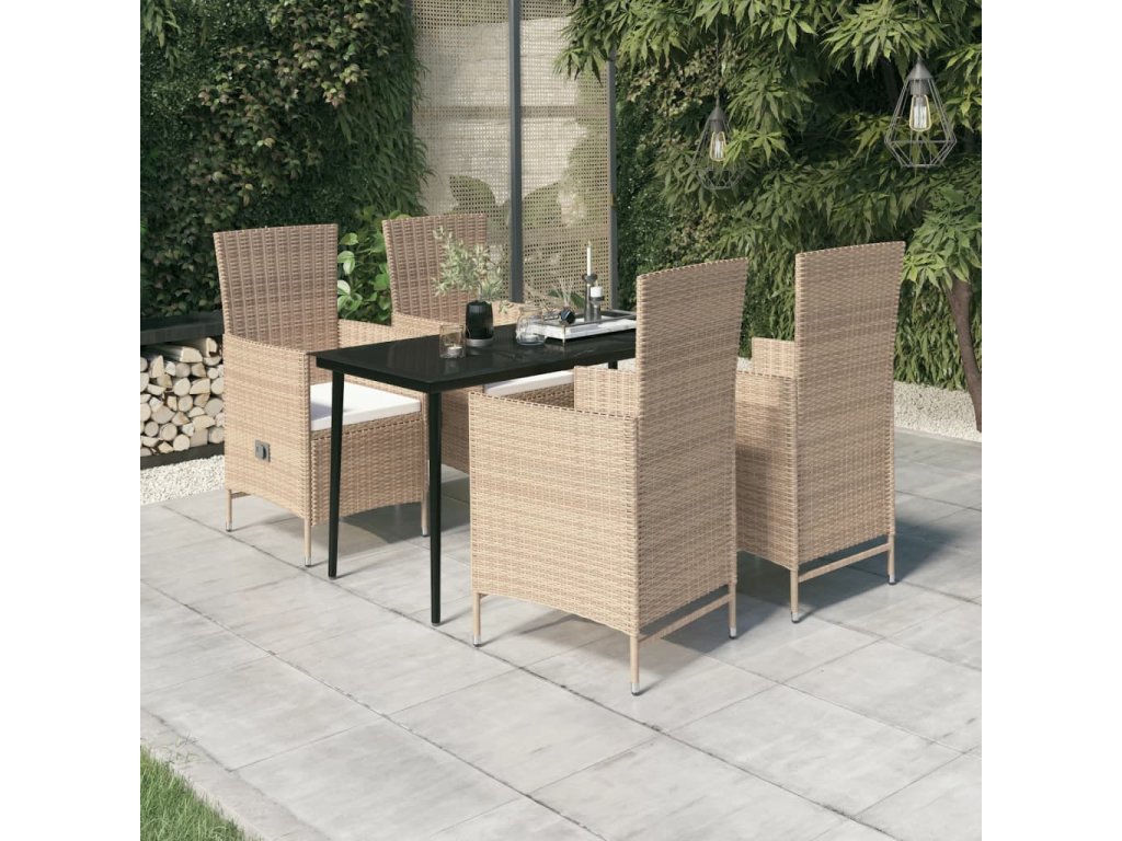 Stôl a stoličky sú pevné a stabilné vďaka oceľovým rámom s práškovým nástrekom, čím sú vhodné pre každodenné vonkajšie používanie. Vďaka vodeodolnému PE ratanu sa stoličky ľahko čistia a sú vhodné na každodenné používanie. Operadlo sa sklápa potiahnutím tlačidla na boku. Vďaka ľahkej konštrukcii sa stoličky ľahko premiestňujú. Hrubo čalúnené sedáky tiež zvyšujú pohodlie. Polyesterové poťahy nenáročné na údržbu je možné zvliecť a vyprať. Hladká sklenená doska stola sa jednoducho čistí vlhkou handričkou a je ideálna na umiestnenie jedál, nápojov a dekoratívnych predmetov.