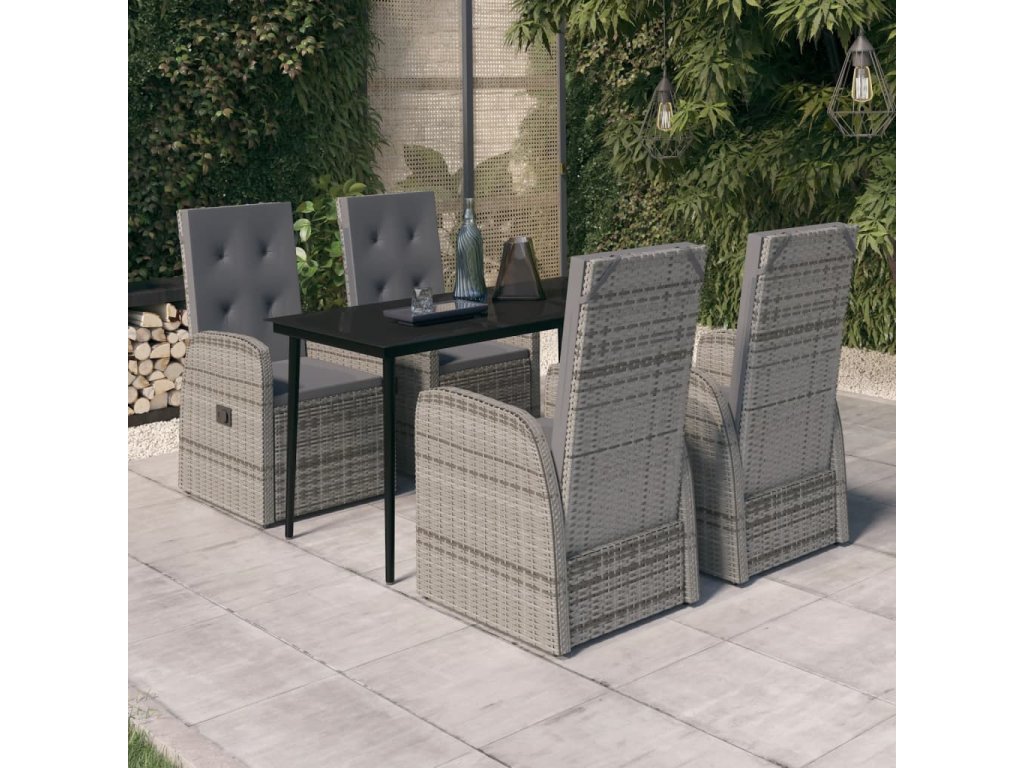 Stôl a stoličky sú pevné a stabilné vďaka oceľovým rámom s práškovým nástrekom, čím sú vhodné pre každodenné vonkajšie používanie. Vďaka vodeodolnému PE ratanu sa stoličky ľahko čistia a sú vhodné na každodenné používanie. Operadlo sa sklápa potiahnutím tlačidla na boku. Vďaka ľahkej konštrukcii sa stoličky ľahko premiestňujú. Hrubo čalúnené sedáky tiež zvyšujú pohodlie. Polyesterové poťahy nenáročné na údržbu je možné zvliecť a vyprať. Hladká sklenená doska stola sa jednoducho čistí vlhkou handričkou a je ideálna na umiestnenie jedál, nápojov a dekoratívnych predmetov.