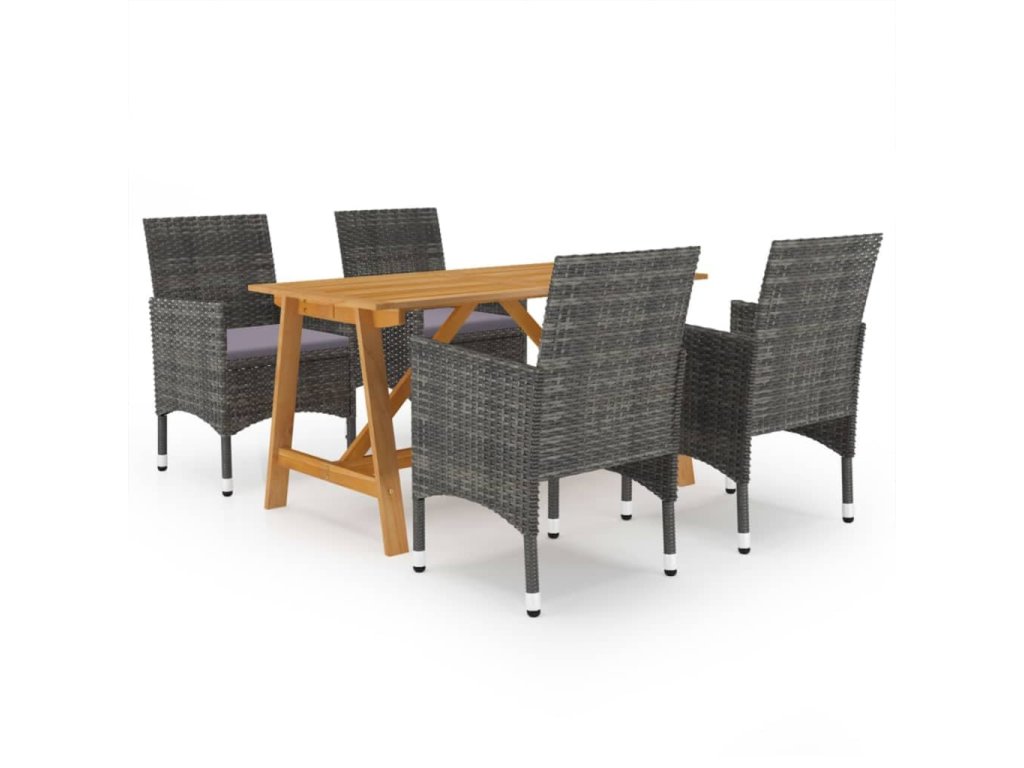 Jedálenský stôl je vyrobený z masívneho akáciového dreva s olejovou povrchovou úpravou, vďaka čomu je stabilný, odolný a ľahko sa udržiava. Vďaka práškovanému oceľovému rámu, ktorý je pokrytý vodeodolným PE ratanom sú tieto jedálenské stoličky pevné a ľahko sa čistia. Jedálenská stolička má zaoblené operadlo a lakťovú opierku, a má ergonomickejší tvar pre maximálne pohodlie. Každé sedadlo je vybavené odnímateľným husto polstrovaným vankúšom, ktorý zvyšuje pohodlie počas sedenia.