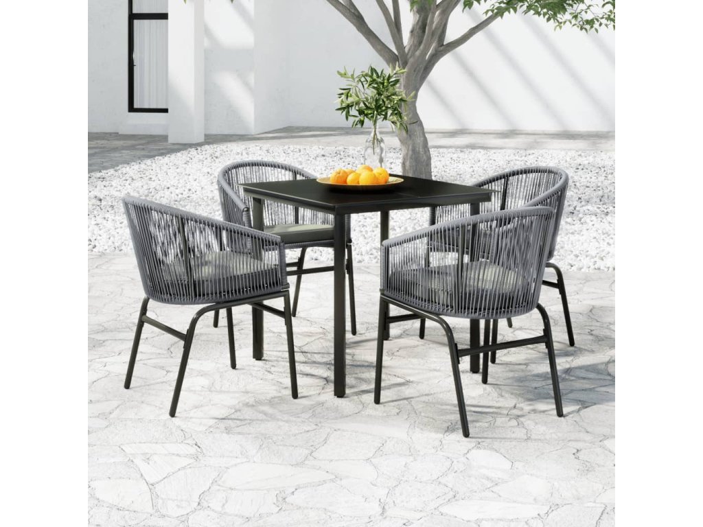 Táto záhradná jedálenská súprava je vyrobená z oceľového rámu s práškovým nástrekom, vďaka čomu je pevná a stabilná na každodenné použitie vonku. Hladká sklenená doska stola sa jednoducho čistí vlhkou handričkou a je ideálna na umiestnenie jedál, nápojov a dekoratívnych predmetov. Terasové stoličky sú vyrobené z PVC ratanu, vďaka čomu sú stabilné a odolné voči nepriazni počasia a UV žiareniu. Každé sedadlo je vybavené odnímateľným husto polstrovaným vankúšom, ktorý zvyšuje pohodlie počas sedenia.