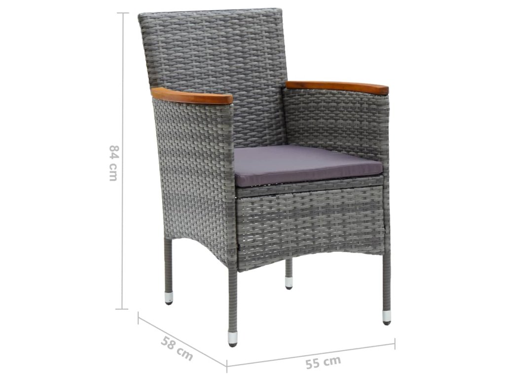 - Materiál: PE (polyetylén) ratan, oceľ s práškovanou povrchovou úpravou, akáciový masív s olejovým náterom