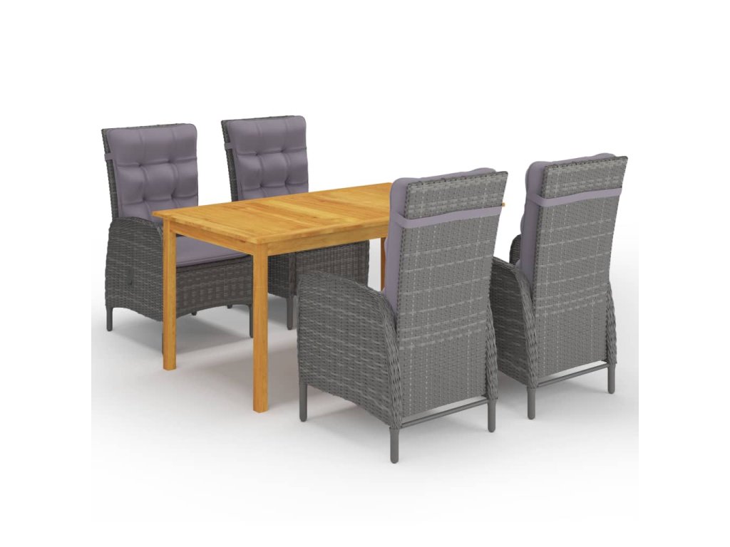 Jedálenský stôl je vyrobený z masívneho akáciového dreva s olejovou povrchovou úpravou, vďaka čomu je stabilný, odolný a ľahko sa udržiava. Vďaka oceľovému rámu s práškovou povrchovou úpravou potiahnutému PE ratanom odolným voči poveternostným vplyvom sú tieto jedálenské stoličky stabilné a ľahko sa čistia. Jedálenská stolička navrhnutá so zakriveným operadlom a opierkou na ruky má ergonomickejší tvar pre maximálne pohodlie. Súčasťou balenia sú vankúše pre väčšiu oporu a poťah na zips je odnímateľný pre jednoduché pranie.