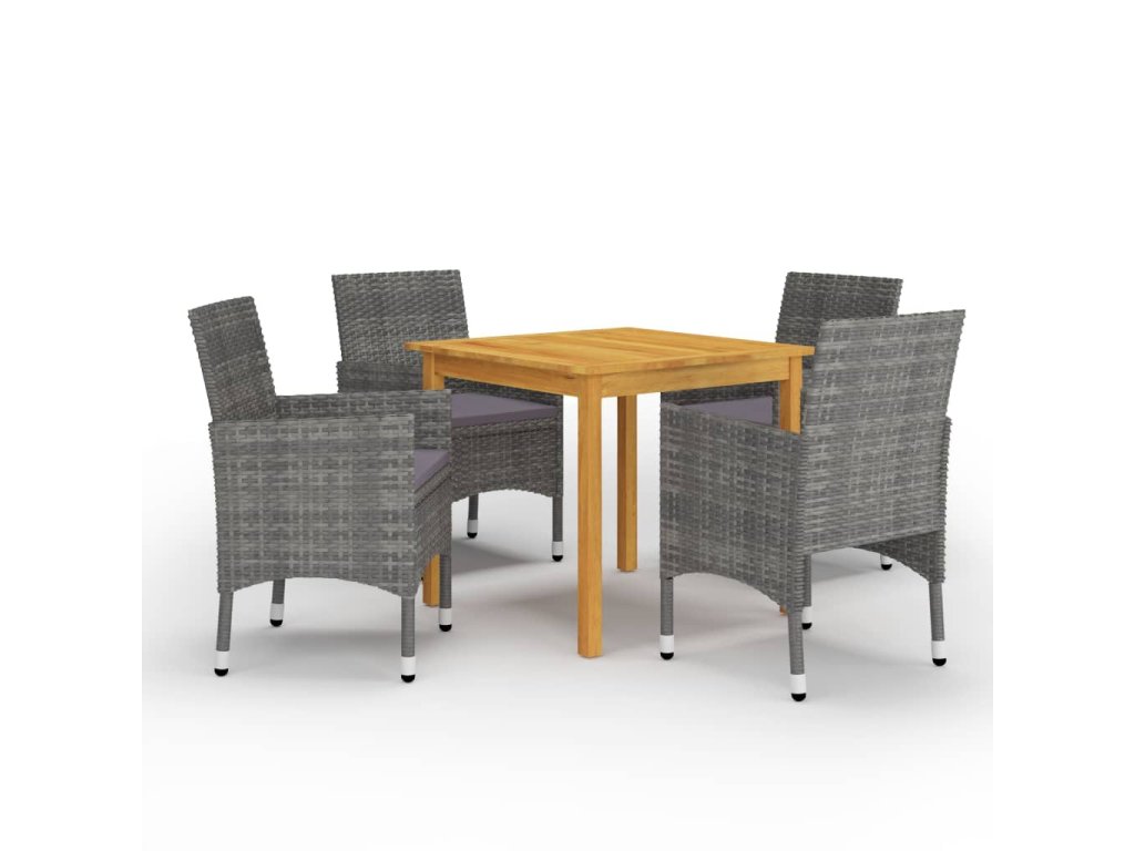 Jedálenský stôl je vyrobený z masívneho akáciového dreva s olejovou povrchovou úpravou, vďaka čomu je stabilný, odolný a ľahko sa udržiava. Vďaka práškovanému oceľovému rámu, ktorý je pokrytý vodeodolným PE ratanom sú tieto jedálenské stoličky pevné a ľahko sa čistia. Jedálenská stolička má zaoblené operadlo a lakťovú opierku, a má ergonomickejší tvar pre maximálne pohodlie. Každé sedadlo je vybavené odnímateľným husto polstrovaným vankúšom, ktorý zvyšuje pohodlie počas sedenia.