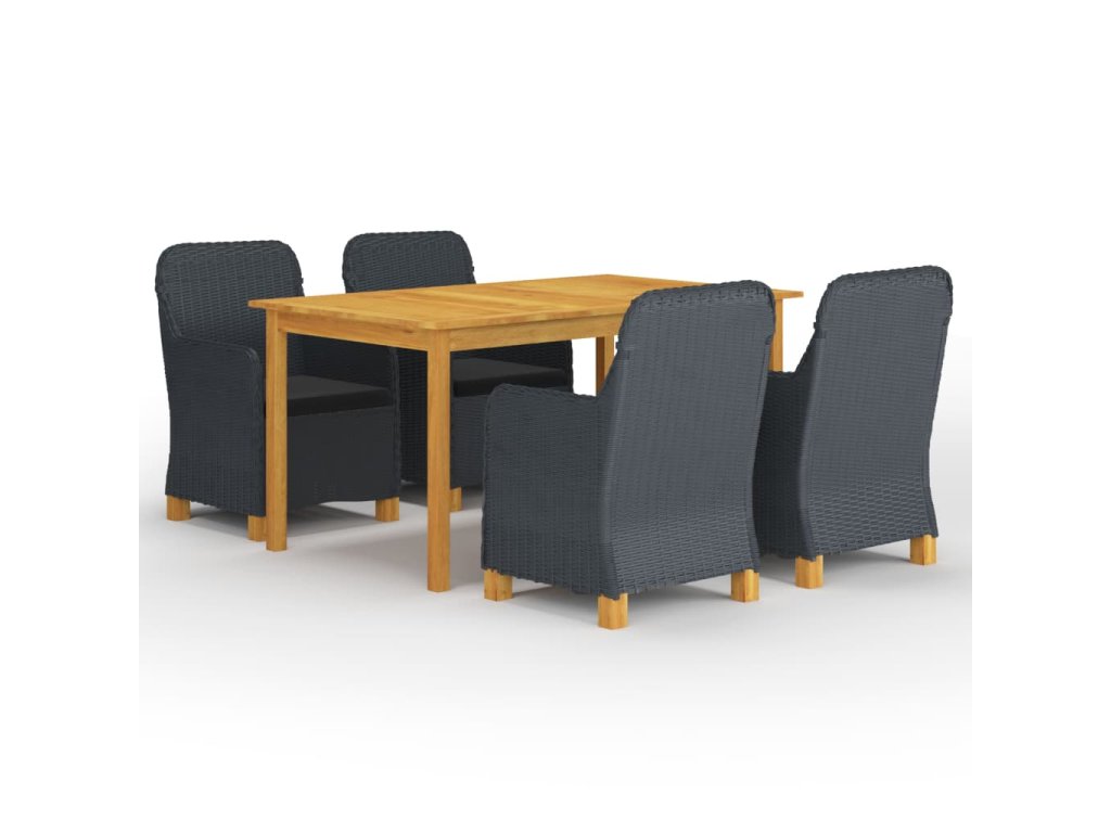 Jedálenský stôl je vyrobený z masívneho akáciového dreva s olejovou úpravou, vďaka čomu je stabilný, odolný a ľahko sa udržiava. Vonkajšie stoličky s oceľovým rámom s práškovým povrchom sú pokryté okrúhlym PE ratanom, a sú robustné a ľahko sa čistia. Husto polstrované vankúše zabezpečia ešte väčšie pohodlie počas oddychu. Poťah na vankúš je vybavený zipsom, dá sa jednoducho zvliecť a oprať. Nohy s masívneho akáciového dreva sa vyznačujú pevnosťou a stabilitou. Záhradné stoličky môžete jednoducho presúvať vďaka ich ľahkej konštrukcii.