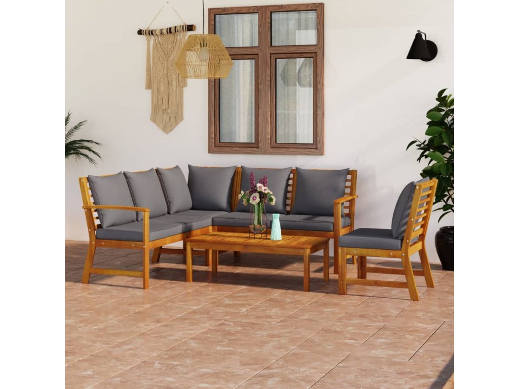 Sedacia súprava s rámom z akáciového masívu je pevná, robustná a trvácna. Súprava pohoviek je ošetrená olejovým náterom, vďaka čomu je vhodná do exteriéru. Súčasťou súpravy je aj konferenčný stolík s jedinečným latkovým dizajnom, na ktorý si môžete položiť občerstvenie, nápoje, čajové šálky alebo knihy, takže ich budete mať stále poruke. Súprava sa dodáva spolu s veľmi pohodlnými, nahusto vyčalúnenými podložkami na sedadlo a operadlo. Polyesterové poťahy si vyžadujú len minimálnu údržbu a dajú sa zvliecť a oprať. Vďaka praktickej modulárnej konštrukcii sa jednotlivé diely dajú ľubovoľne usporiadať a prispôsobiť okolitému prostrediu.