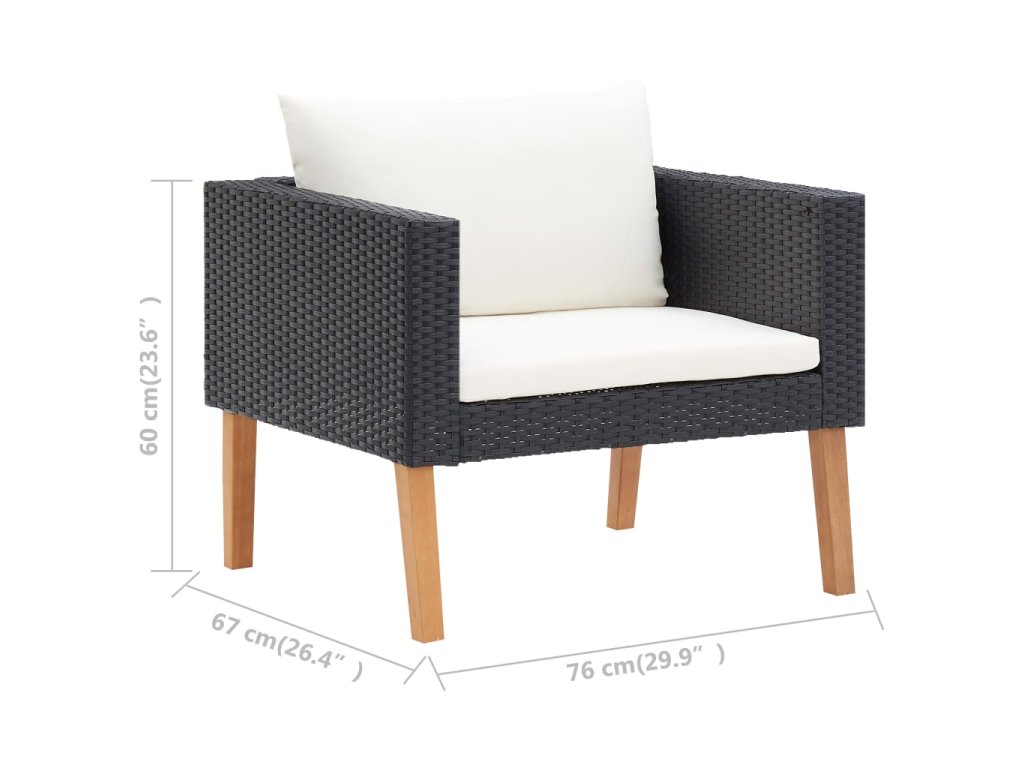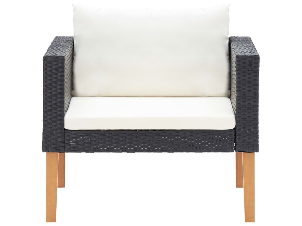 - Materiál: PE ratan, oceľ s práškovou povrchovou úpravou, látka (100% polyester), eukalyptus s povrchovou úpravou v podobe tíkového dreva