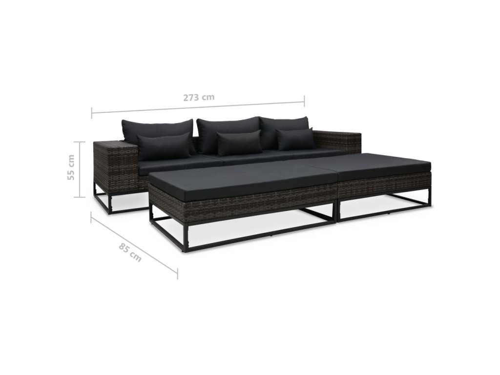 Vďaka oceľovým rámom s práškovanou povrchovou úpravou sú pohovky pevné a odolné. Vďaka PE ratanu odolnému voči poveternostným vplyvom sa sada záhradného nábytku ľahko čistí a je odolná. Hrubé mäkké vankúše sú navyše veľmi pohodlné. Polyesterové poťahy sa dajú zvliecť a oprať, čím sa ľahko očistia. Tieto pohovky sa dajú používať samotne alebo skombinované do veľkej pohovky. Táto súprava je veľmi ľahká, vďaka čomu sa dá jednoducho premiestňovať.