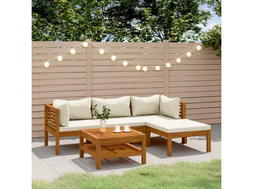 Sedacia súprava s rámom z akáciového masívu je pevná, robustná a trvácna. Súprava pohoviek je ošetrená olejovým náterom, vďaka čomu je vhodná do exteriéru. Odnímateľné podložky s hustou výplňou poskytujú maximálne pohodlie. Súčasťou súpravy je aj konferenčný stolík s jedinečným latkovým dizajnom. Vďaka praktickej modulárnej konštrukcii sa jednotlivé diely dajú ľubovoľne usporiadať a prispôsobiť okolitému prostrediu.