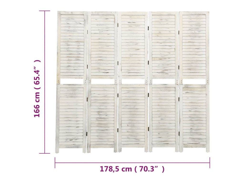 Tento voľne stojaci a elegantný 5-panelový paraván sa dá použiť na dekoráciu alebo ako oddeľovacia priečka. Je ideálny na umiestnenie do spálne a vytvorenie oddeleného súkromného šatníka alebo na oddelenie časti miestnosti. Okrem toho má pevnú konštrukciu z dreva paulovnie a je navrhnutý s vetracími otvormi, ktoré umožňujú presvetlenie a dobrú cirkuláciu vzduchu. Môže sa tiež jednoducho poskladať, aby sa ušetrilo miesto, keď sa nepoužíva.