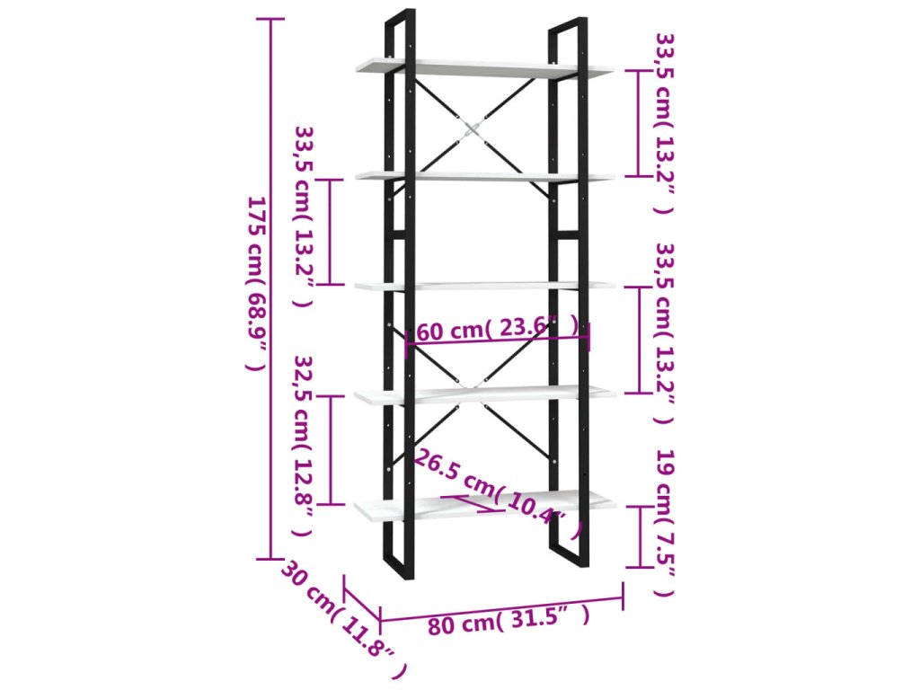 Knižnica je vyrobená z borovicového dreva a kovového rámu, čo zaručuje jej odolnosť, trvácnosť a dlhodobú životnosť. Je vybavená 5 poličkami a ponúka dostatok úložného priestoru na umiestnenie kníh, časopisov a iných dekoratívnych predmetov. Knižnica sa ľahko čistí vlhkou handričkou.