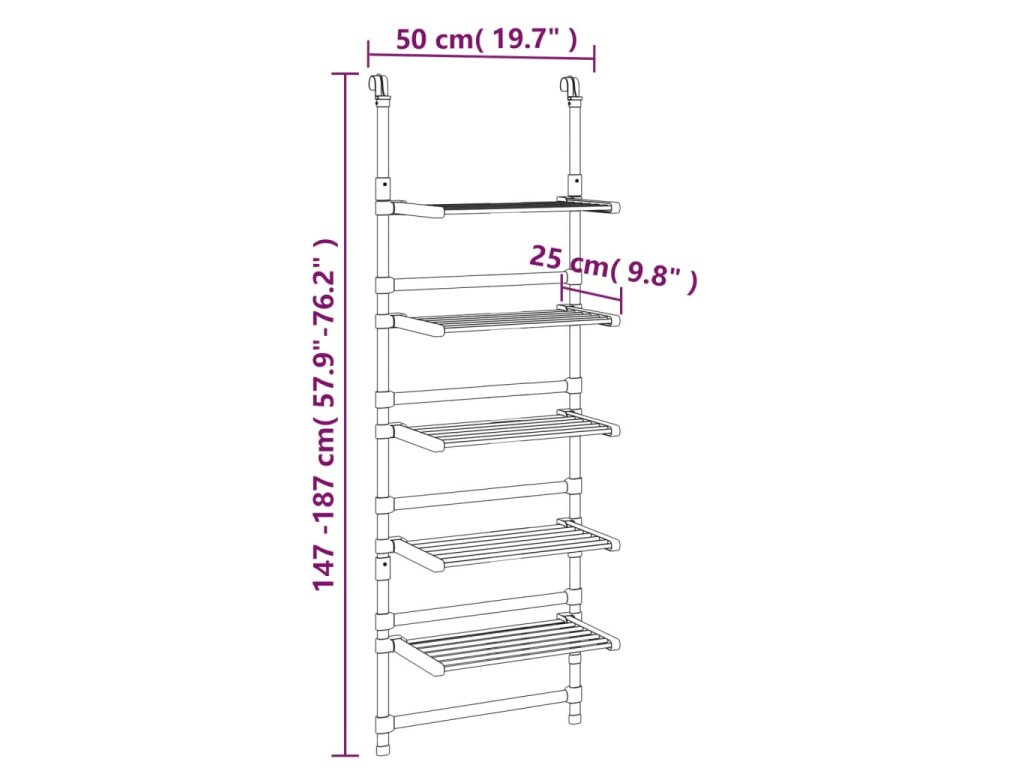 - Nastaviteľná výška: Tento vešiak na šaty je možné predĺžiť od 147 do 187 cm na výšku, takže si môžete vybrať najvhodnejšiu výšku podľa svojich potrieb.