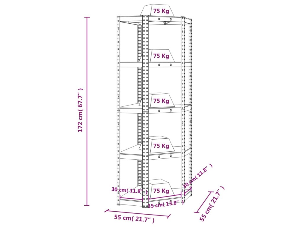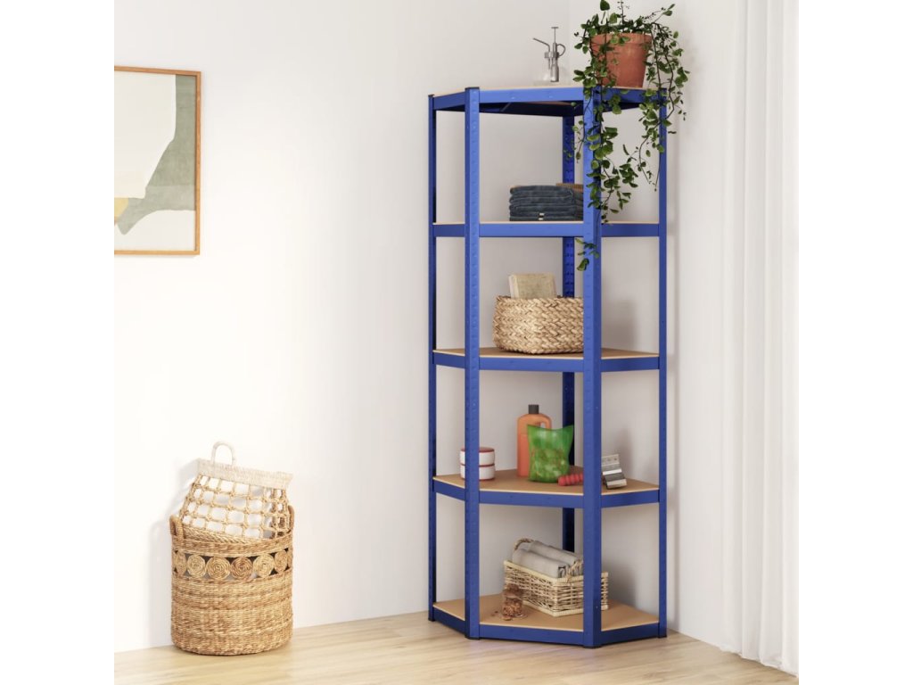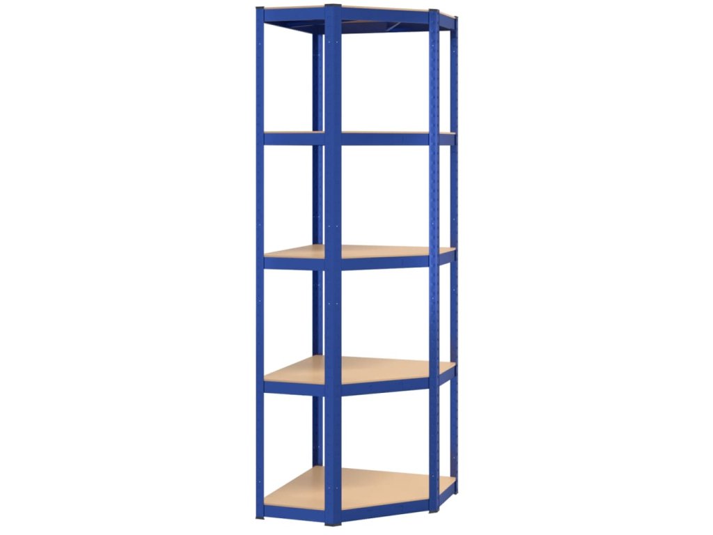 Tento rohový regál je vhodný do domácností aj komerčných priestorov a poskytuje množstvo miesta na prehľadné odkladanie rôznych predmetov.