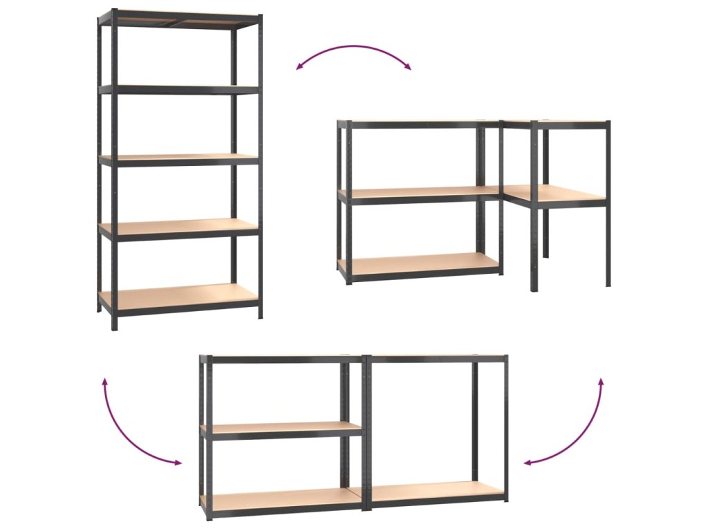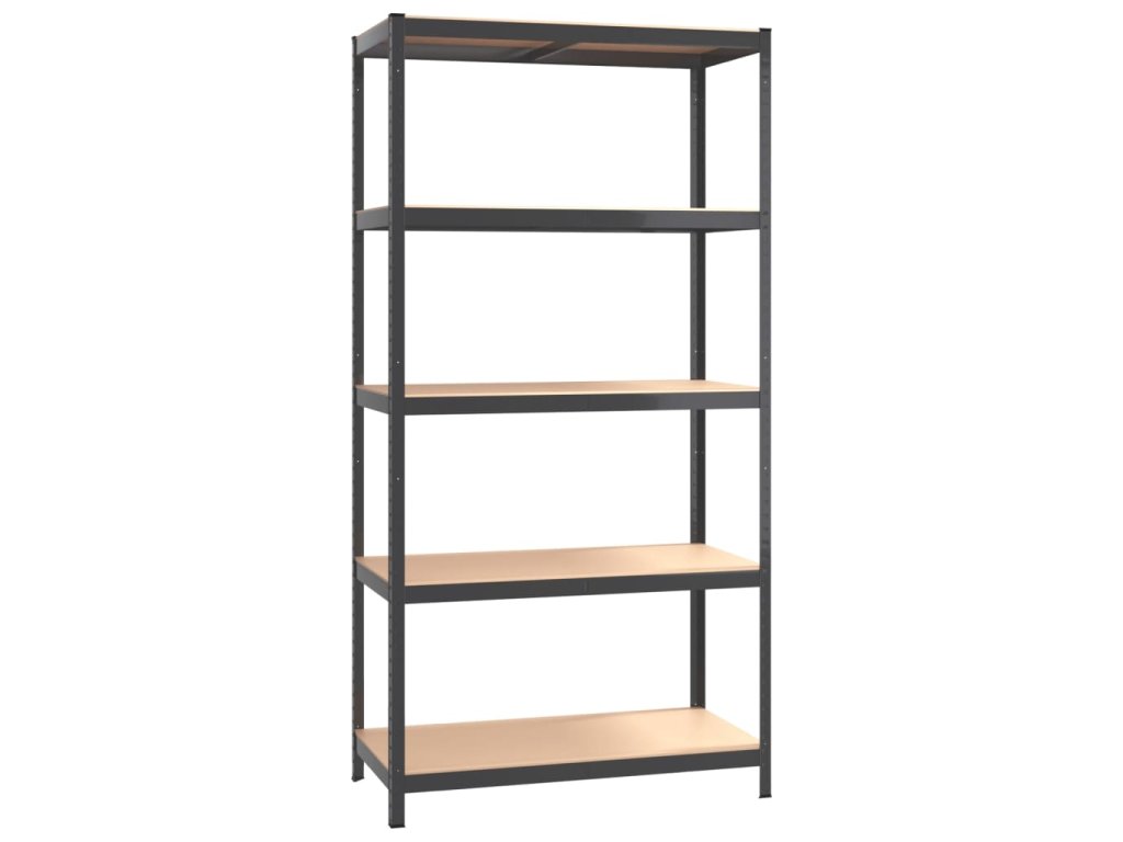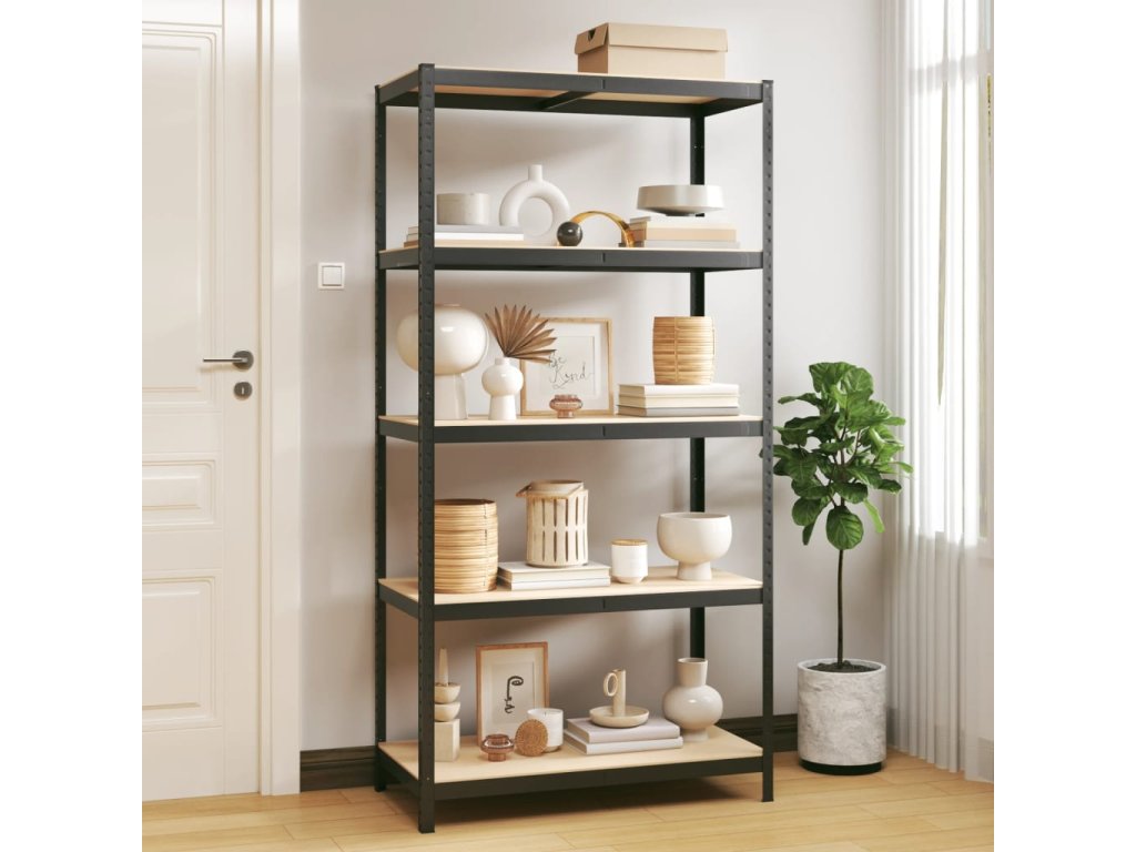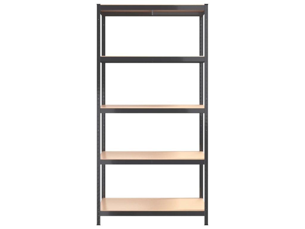- Pevný materiál: Úložný regál pozostáva z oceľového rámu a drevených dosiek. Oceľové rámy zaručujú pevnosť a stabilitu, zatiaľ čo umelé drevo ponúka pevnosť, stabilitu a odolnosť proti vlhkosti.