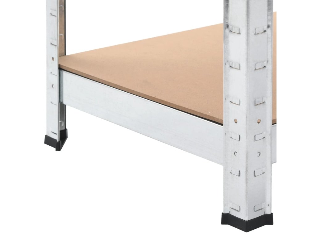 - Pevný materiál: Úložný regál pozostáva z oceľového rámu a dosiek zo spracovaného dreva. Oceľové rámy zaručujú pevnosť a stabilitu, zatiaľ čo umelé drevo ponúka pevnosť, stabilitu a odolnosť proti vlhkosti.