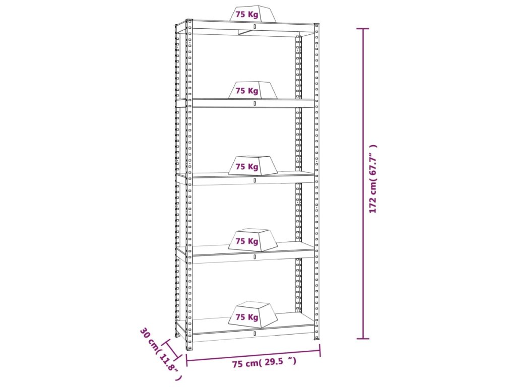 - Celková nosnosť: 375 kg (75 kg na policu)