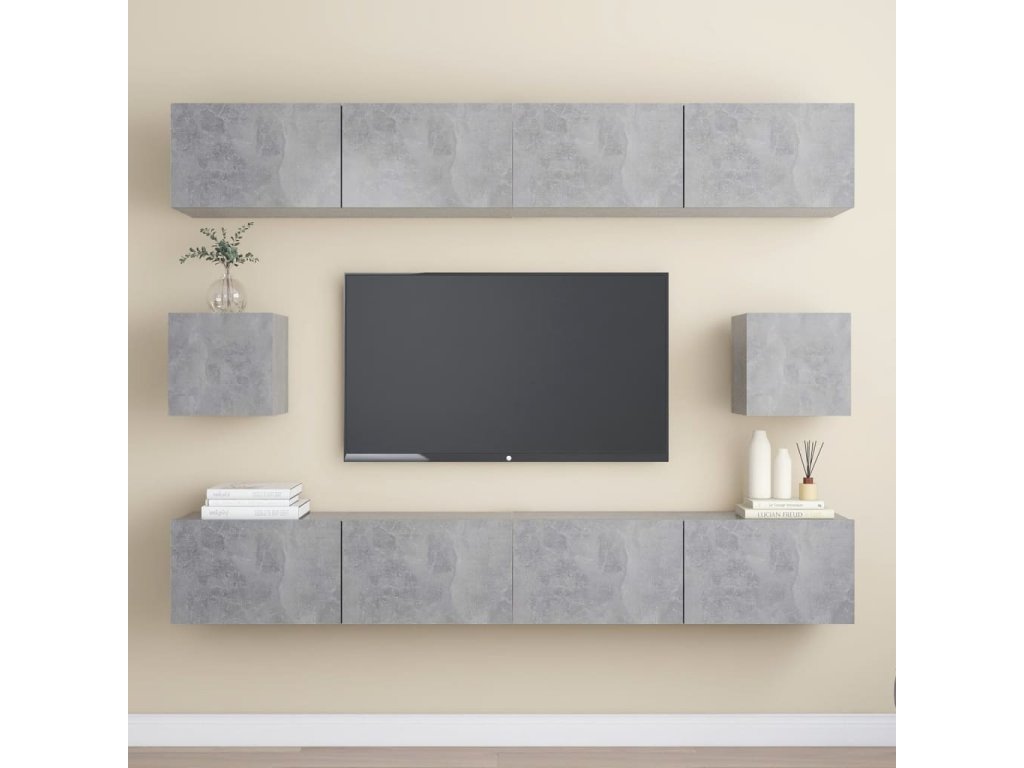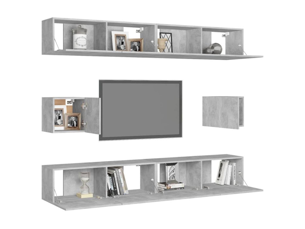 Táto sada závesných TV skriniek je vybavená veľkým úložným priestorom na uloženie rôznych predmetov a vo vašej domácnosti vytvorí praktický a pútavý doplnok.