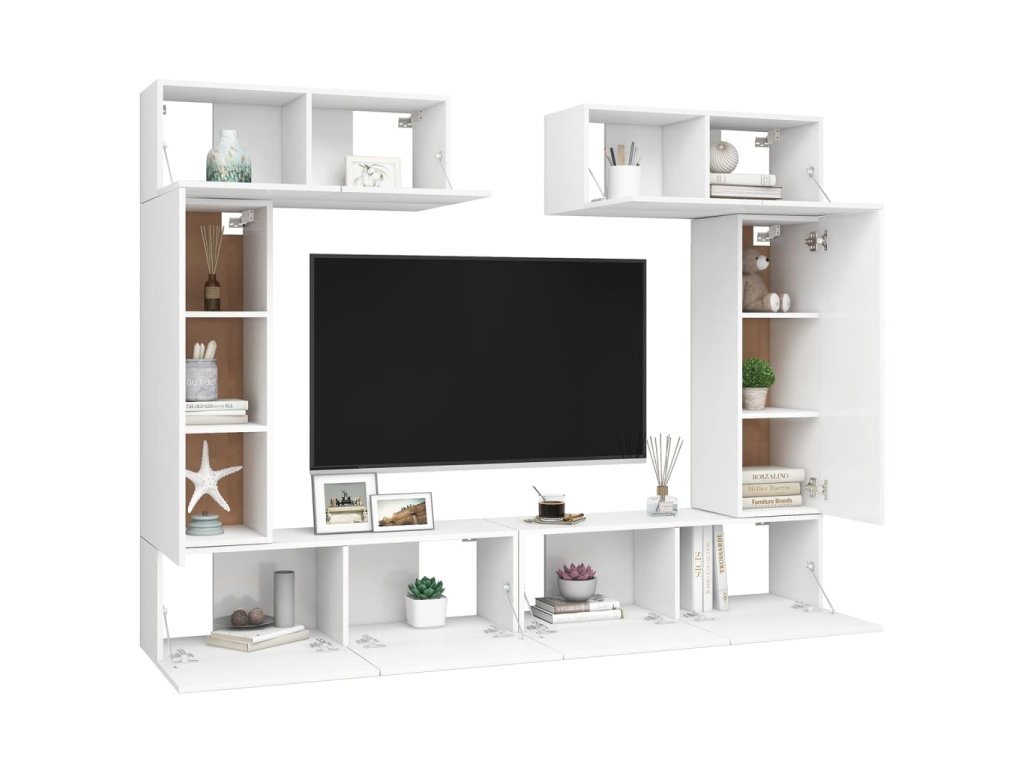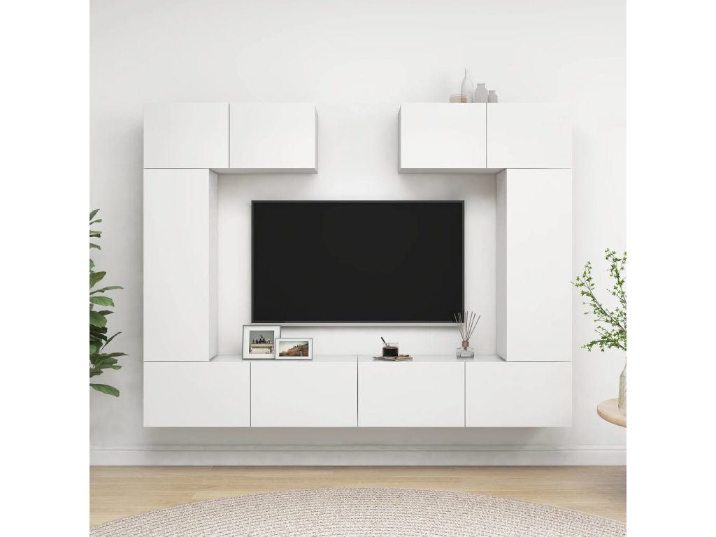 Táto sada závesných TV skriniek je vybavená veľkým úložným priestorom na uloženie rôznych predmetov a vo vašej domácnosti vytvorí praktický a pútavý doplnok.