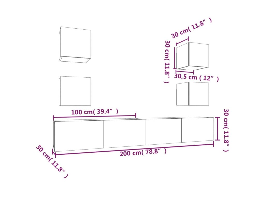 - 4 x TV skrinka: 30,5 x 30 x 30 cm (Š x H x V)