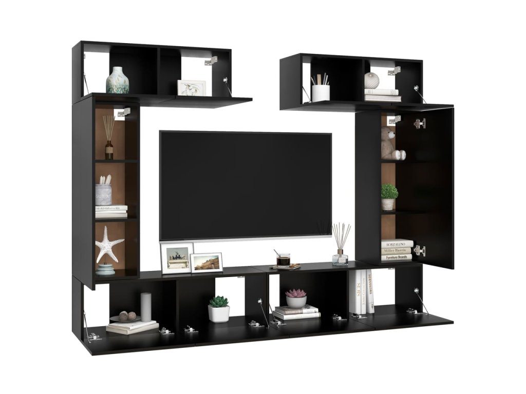 Táto sada závesných TV skriniek je vybavená veľkým úložným priestorom na uloženie rôznych predmetov a vo vašej domácnosti vytvorí praktický a pútavý doplnok.