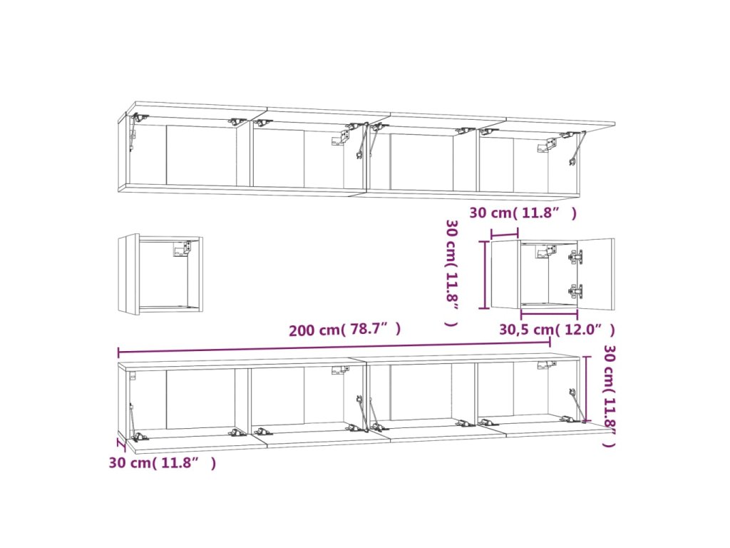 - 4 x TV skrinka: 100 x 30 x 30 cm (Š x H x V)