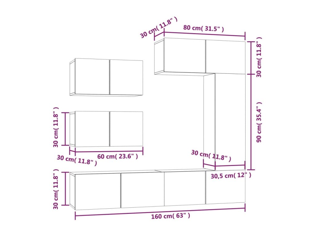 - 3 x TV skrinka: 80 x 30 x 30 cm (D x Š x V)