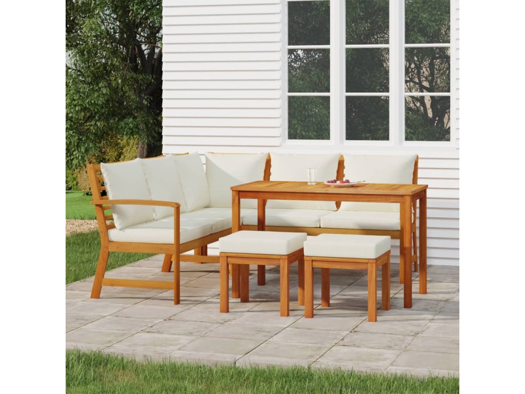Táto drevená záhradná jedálenská súprava s vankúšmi s nadčasovým dizajnom dodá vašej terase, balkónu alebo záhrade nádych rustikálneho šarmu.