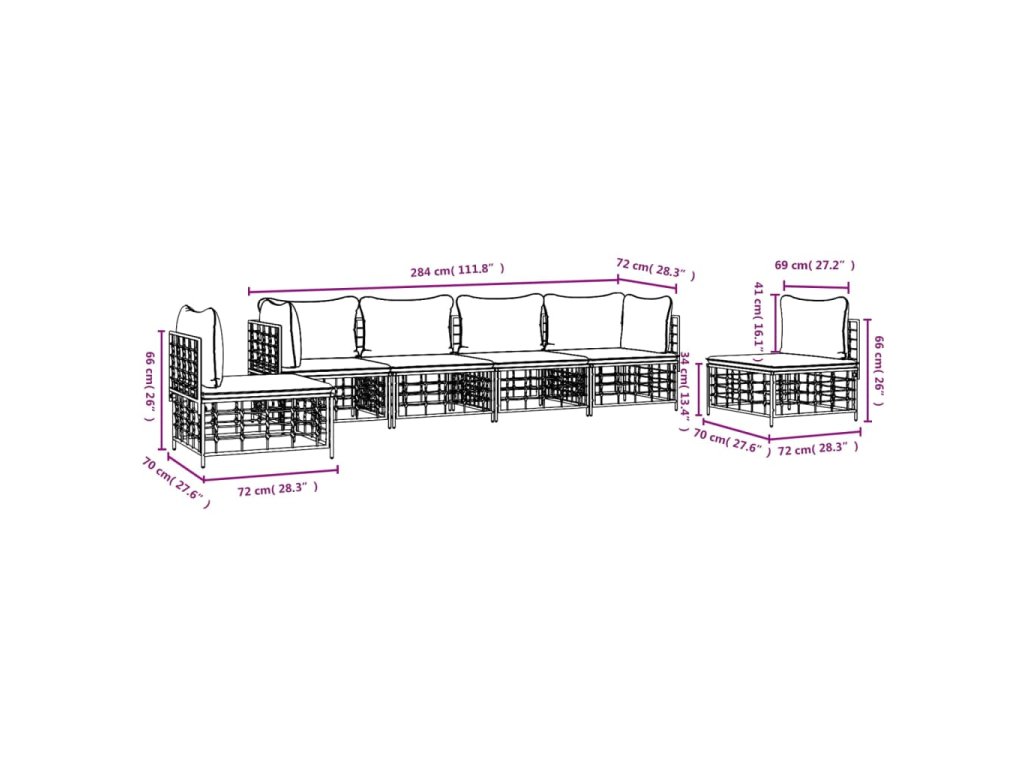 - Modulárny dizajn: Záhradná súprava nábytku je flexibilná a ľahko sa presúva, takže ju môžete skombinovať s inými modulárnymi segmentmi vo webovom obchode a vytvoriť si tak svoje vlastné osobné konfigurácie záhradnej sedacej súpravy!