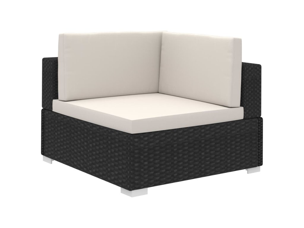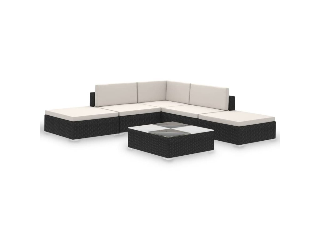V balení sa nachádza 1 x rohové kreslo, 2 x kreslo bez opierok na ruky, 2 x taburetka, 1 x konferenčný stolík so sklenenou doskou, 5 x čalúnená podložka na sedadlo a 4 x čalúnená podložka na operadlo.