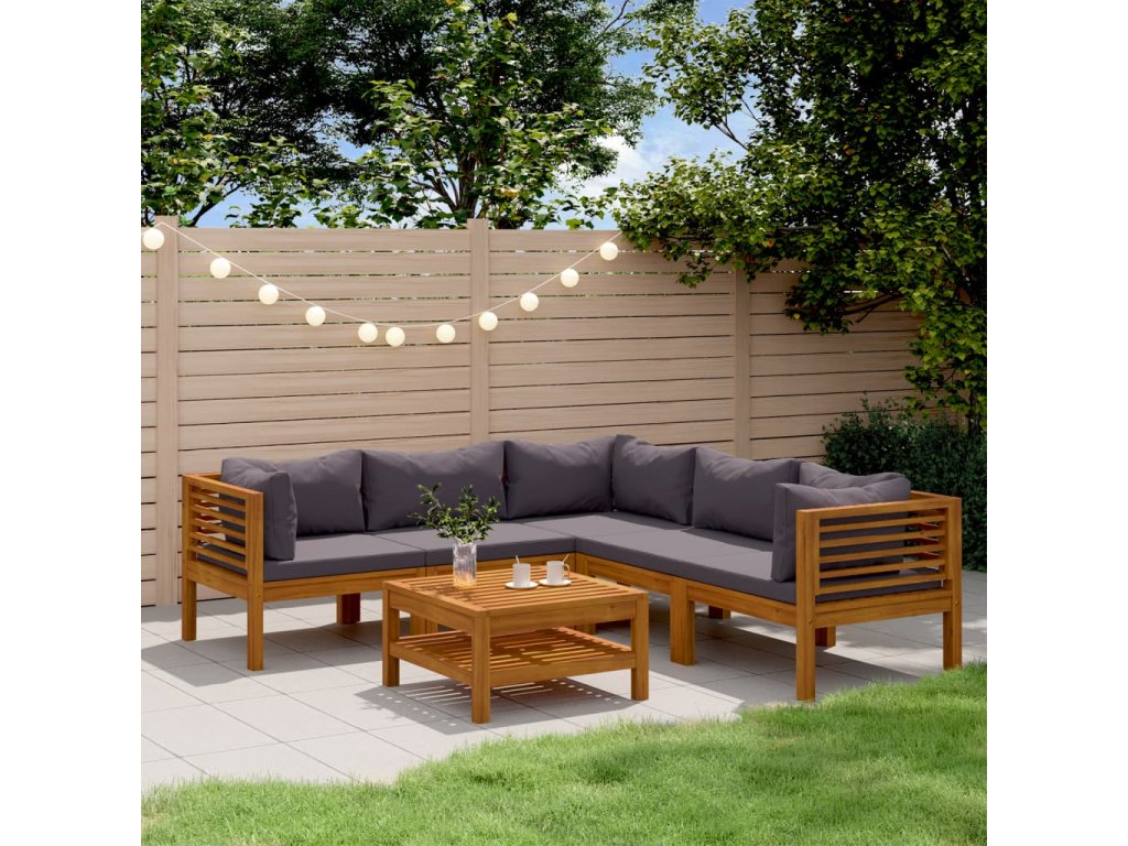 Sedacia súprava s rámom z akáciového masívu je pevná, robustná a trvácna. Súprava pohoviek je ošetrená olejovým náterom, vďaka čomu je vhodná do exteriéru. Odnímateľné podložky s hustou výplňou poskytujú maximálne pohodlie. Súčasťou súpravy je aj konferenčný stolík s jedinečným latkovým dizajnom. Vďaka praktickej modulárnej konštrukcii sa jednotlivé diely dajú ľubovoľne usporiadať a prispôsobiť okolitému prostrediu.
