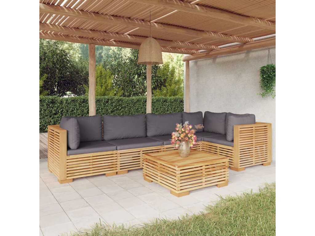 - Masívne teakové drevo: Masívne teakové drevo je krásny prírodný materiál. Bolo vyzreté, umelo vysušené a jemne obrúsené, čo mu dalo veľmi hladký vzhľad. Teakové drevo je známe svojou výnimočnou pevnosťou a odolnosťou voči poveternostným vplyvom.