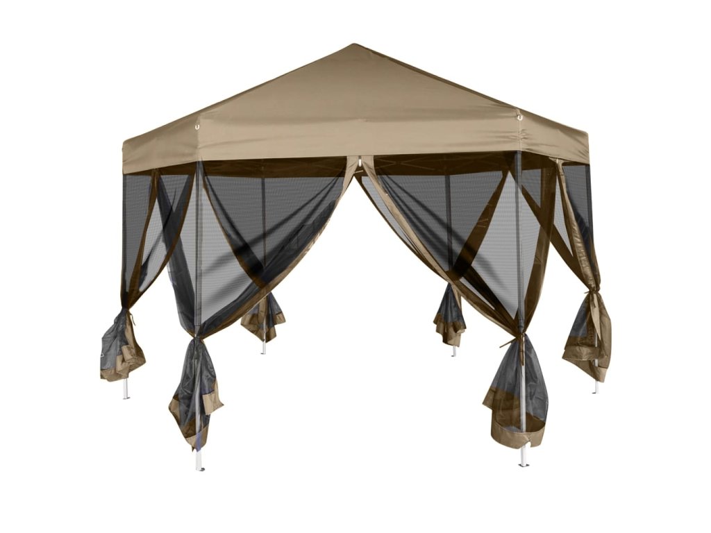 - Praktické bočné steny: 6 sieťovaných bočných stien je možné nielen úplne uzavrieť dvojitým zipsom, ale steny sa dajú pripevniť k stĺpikom pomocou šnúrok pre jednoduchý vstup a vetranie.