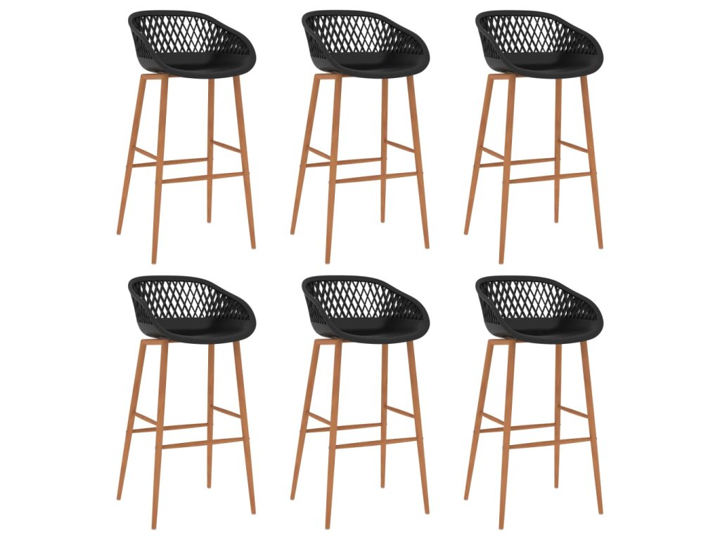 Stolová doska je vyrobená z MDF, ktorá sa ľahko čistí. Kovový rám s práškovou povrchovou úpravou zvyšuje stabilitu a pevnosť barového stola. Barové stoličky majú ergonomicky tvarované sedadlo so vstavaným nízkym operadlom v sieťovom vzhľade. Tieto barové stoličky sú vyrobené z pevného PP a podopierajú ich pevné kovové nohy s teplonosnou potlačou v drevenom vzhľade, vďaka čomu sú odolné a trvácne.