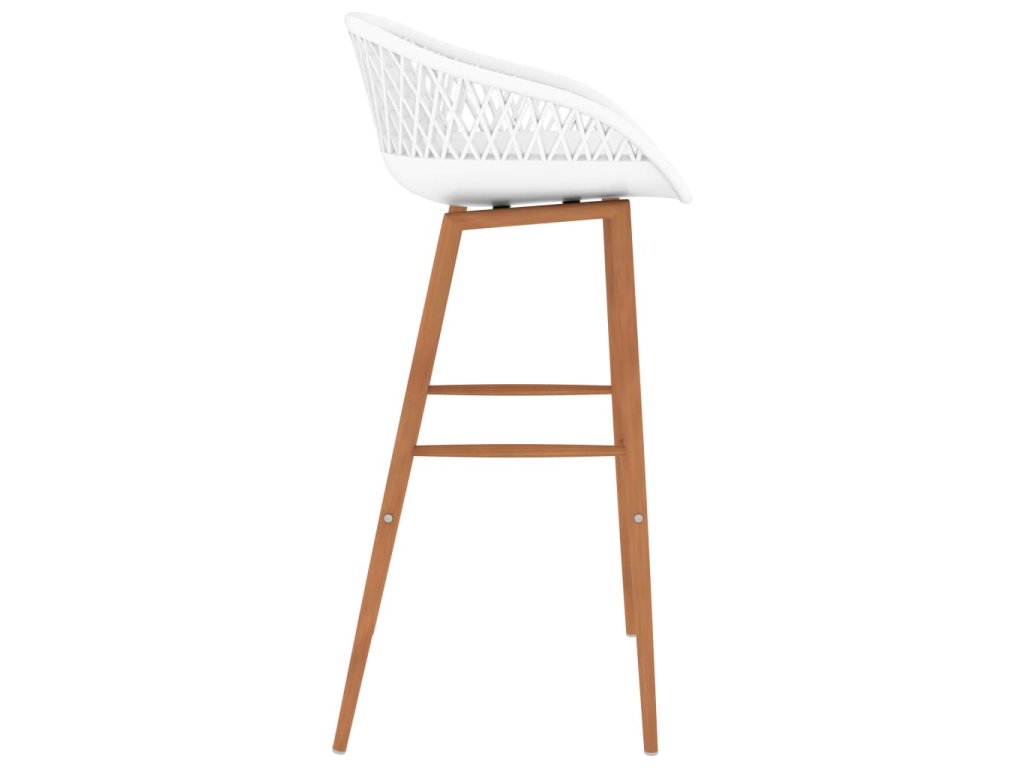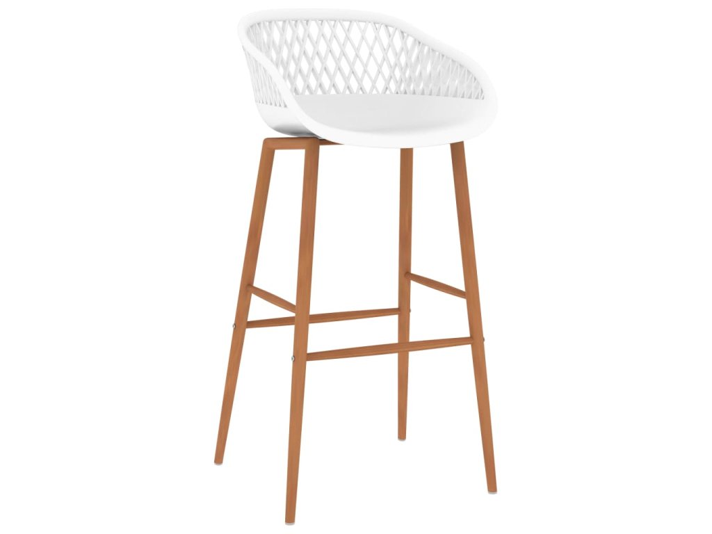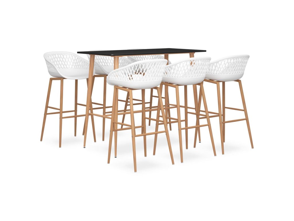 Stôl obsahuje trvácnu dosku z MDF a pevné kovové nohy s dreveným vzhľadom. Barové stoličky majú ergonomicky tvarované sedadlo s integrovaným nízkym operadloms mriežkovaným vzhľadom. Stoličky k baru sú vyrobené z pevného PP a stoja na pevných kovových nohách s transferovou potlačou s dreveným vzhľadom, vďaka čomu sú naozaj stabilné a trvácne.
