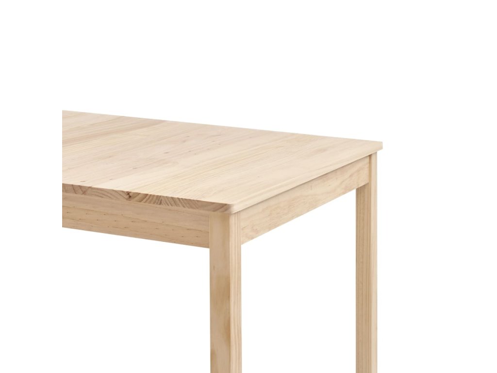 Jedálenský stôl a stoličky sú vyrobené z borovicového dreva, takže sú mimoriadne stabilné a trvácne. Jedálenská súprava sa jednoducho montuje a dá sa ľahko očistiť navlhčenou handričkou.