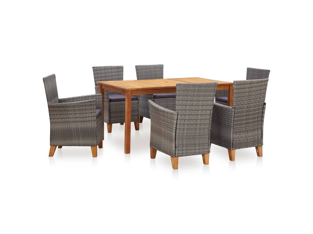 - Materiál: PE (polyetylén) ratan, práškovaná oceľ, masívne akáciové drevo