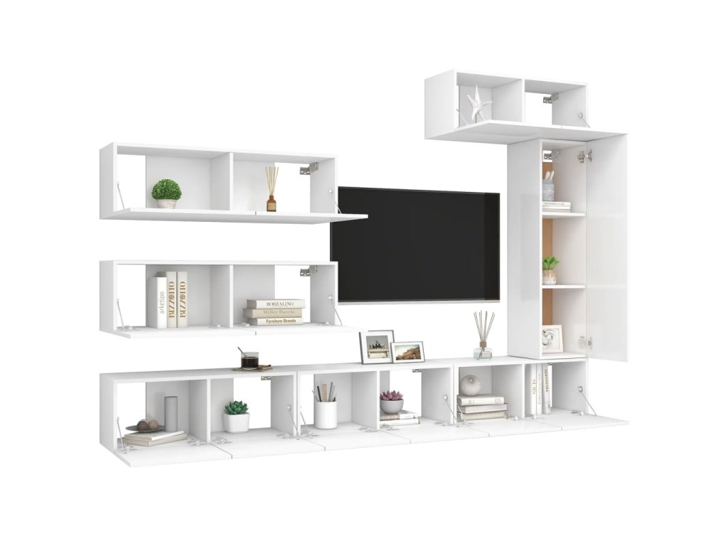 Táto sada závesných TV skriniek je vyrobená z upraveného dreva, vďaka čomu je pevná a odolná. Zostava skrinky je pripevnená na stenu, vďaka čomu bude nadčasovým doplnkom vášho domova. Súprava obsahuje niekoľko priehradiek, vďaka ktorým je ideálnym miestom na uloženie všetkých vašich časopisov, DVD alebo iných predmetov. Táto HiFi skrinka sa dá ľahko očistiť navlhčenou handričkou.