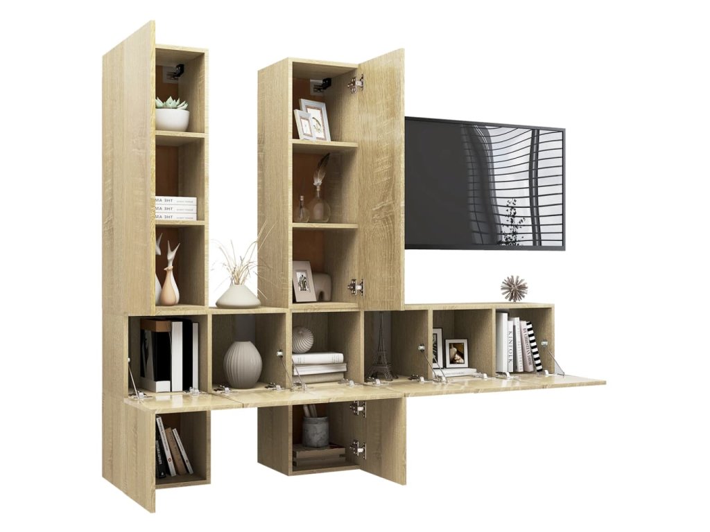 Táto sada televíznych skriniek s moderným dizajnom a veľkým úložným priestorom sa stane ústredným bodom vašej obývačky.