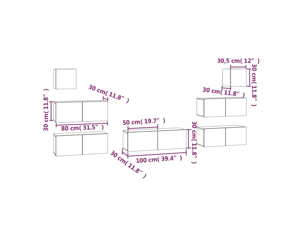 - 4 x TV skrinka: 80 x 30 x 30 cm (Š x H x V)