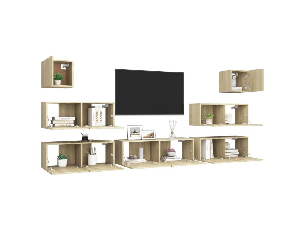 Táto sada závesných TV skriniek je vyrobená z upraveného dreva, vďaka čomu je pevná a odolná. Zostava skrinky je pripevnená na stenu, vďaka čomu bude nadčasovým doplnkom vášho domova. Súprava obsahuje niekoľko priehradiek, vďaka ktorým je ideálnym miestom na uloženie všetkých vašich časopisov, DVD alebo iných predmetov. Táto HiFi skrinka sa dá ľahko očistiť navlhčenou handričkou.