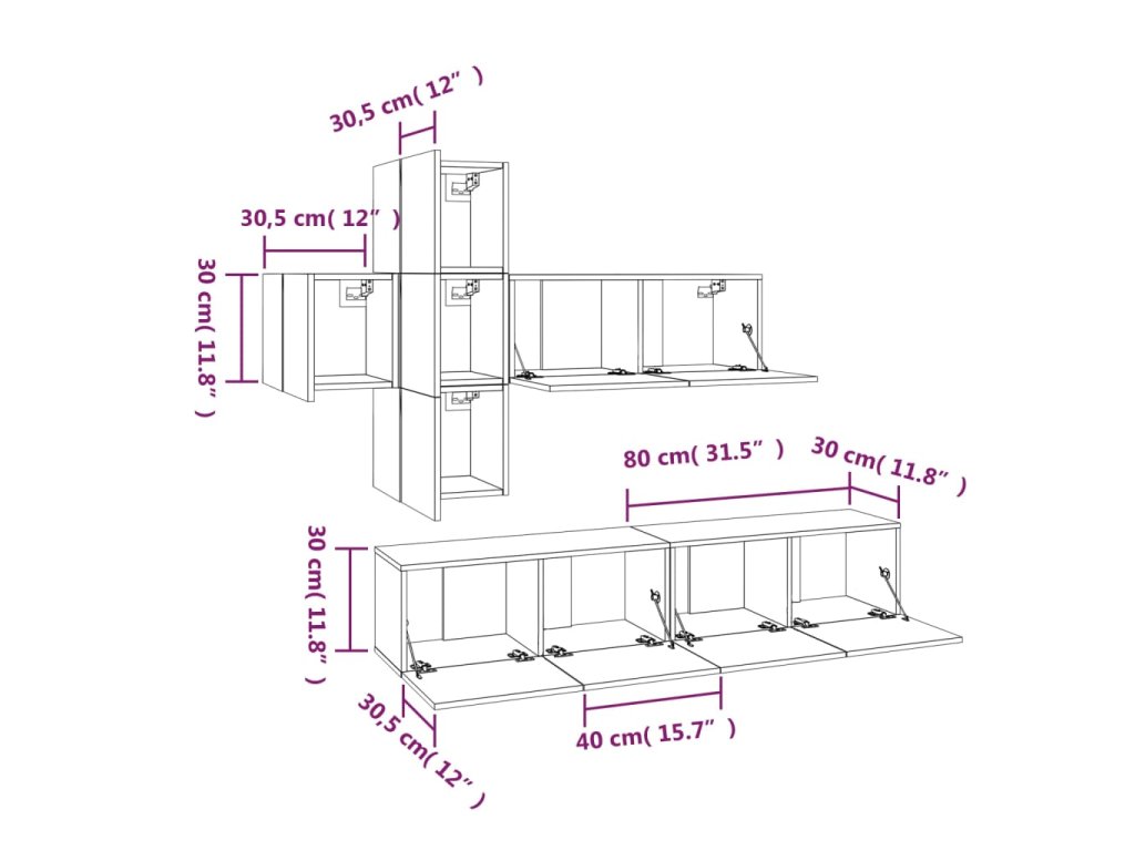 - 4 x TV skrinka: 30,5 x 30 x 30 cm (Š x H x V)