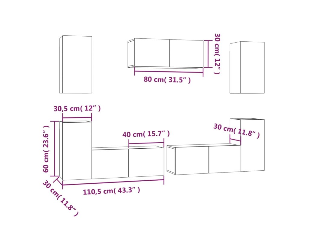 - 4 x TV skrinka: 30,5 x 30 x 60 cm (Š x H x V)