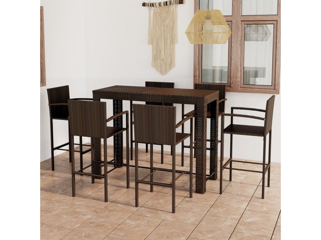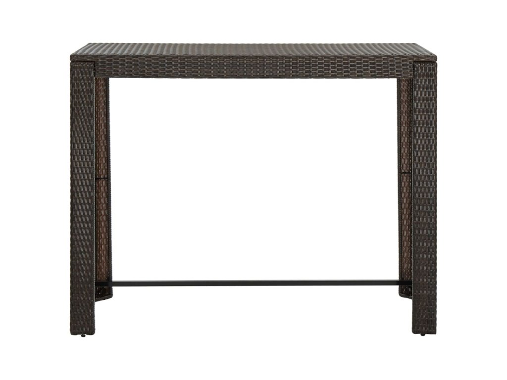 Barový stôl je opatrený oceľovým rámom s práškovanou povrchovou úpravou, vďaka čomu je stabilný a odolný. Stolová doska je ideálna na odloženie nápojov, jedla alebo dekoratívnych predmetov. Stoličky majú pevnú konštrukciu z oceľového rámu a sú vyrobené z PE ratanu odolného voči poveternostným vplyvom, čo zaisťuje ich stabilitu a ľahké premiestňovanie. Opierka nôh dodáva stoličke väčšie pohodlie počas sedenia.
