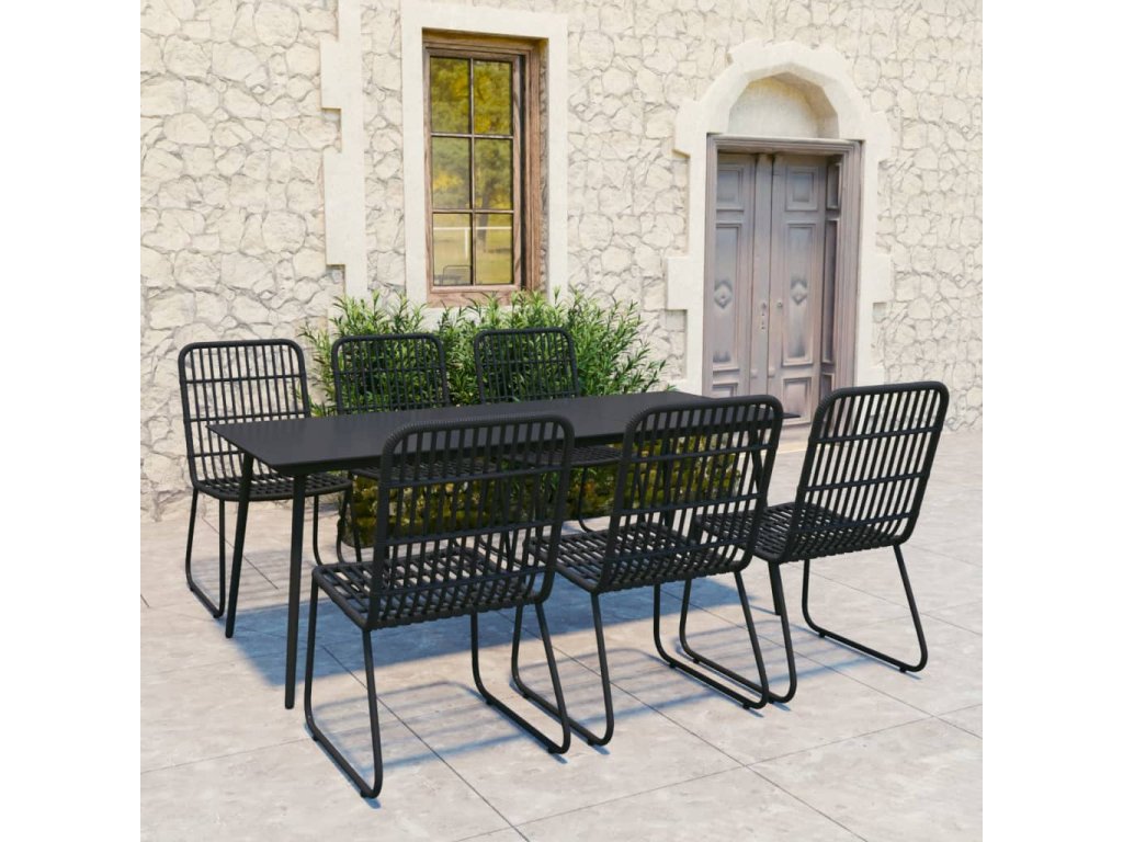 Vďaka oceľovému rámu je sada stola aj stoličiek pevná a stabilná. Pretože je súprava ľahká, všetky položky sa dajú jednoducho presúvať a sú vhodné na vonkajšie použitie. Sklenená stolová doska sa ľahko čistí vlhkou handričkou. Jednoduchá elegancia tejto jedálenskej súpravy ozvláštni vaše každodenné večere. Stoličky sú vybavené polyratanovými sedadlami a operadlami, ktoré sú odolné voči poveternostným vplyvom.