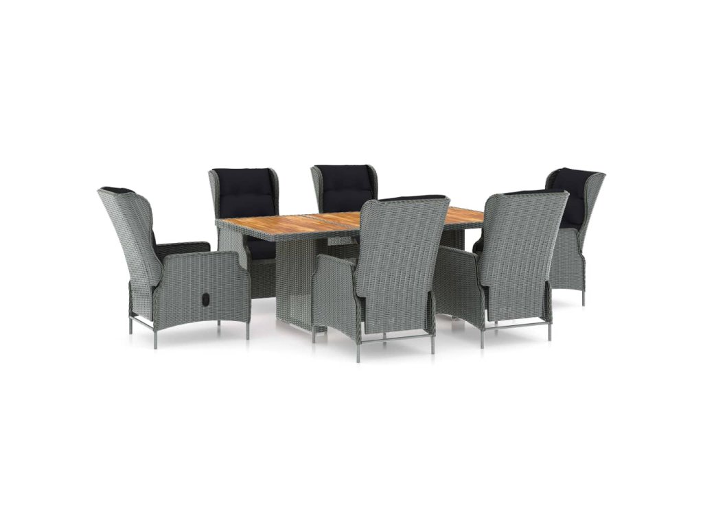 Táto vonkajšia jedálenská súprava stelesňuje dokonalú kombináciu štýlu a funkčnosti, a tak sa zaručene stane stredobodom vašej záhrady, balkóna či terasy.