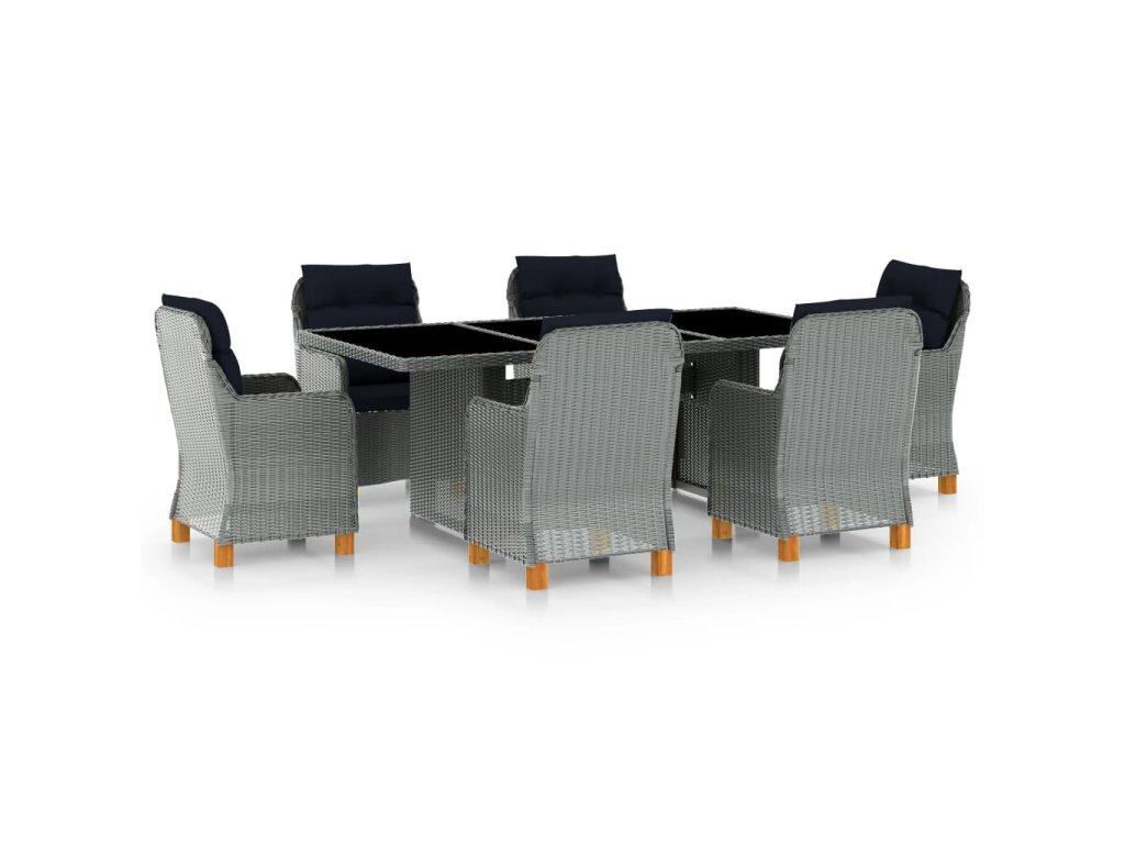 - Materiál: Okrúhly PE ratan, oceľ s práškovou povrchovou úpravou, akáciový masív, tvrdené sklo
